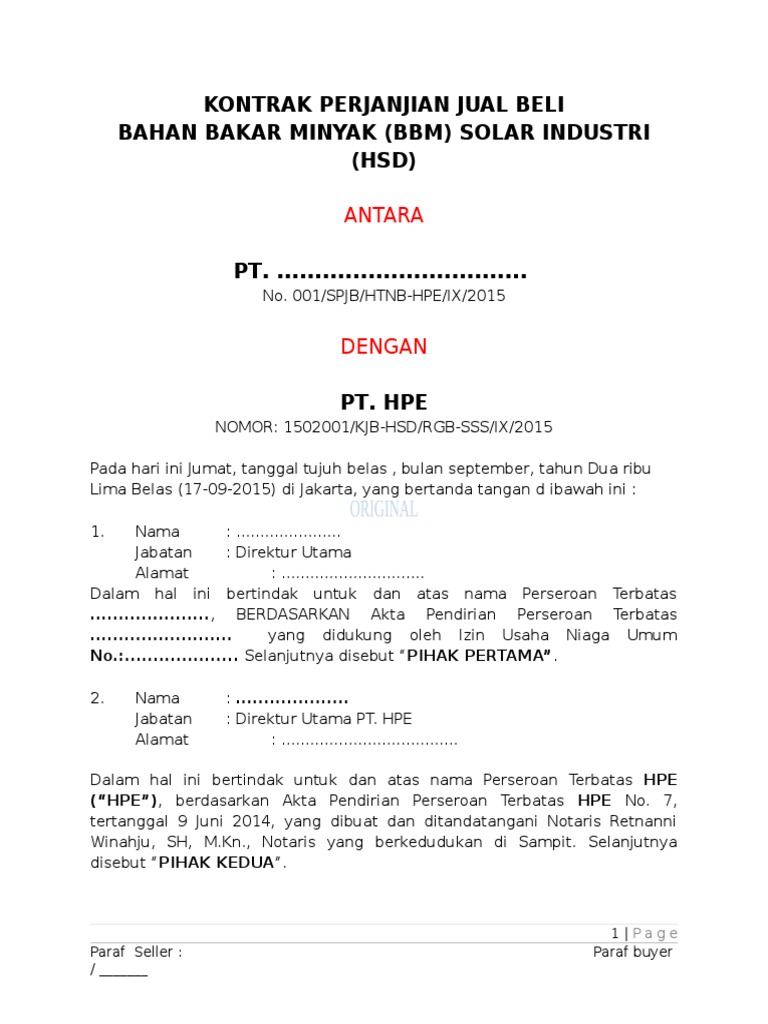Kontrak Perjanjian Jual Beli Pdf